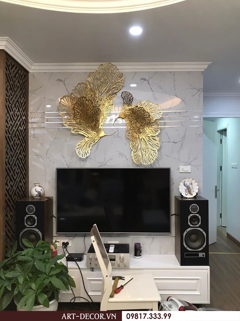 Ngày nay, các loại tranh sơn dầu, sơn mài,…ít khi được sử dụng trong nghệ thuật trang trí phòng khách. Có thể nói, kết hợp tranh sắt nghệ thuật chính là cách lựa chọn tranh trang trí phòng khách ấn tượng và độc đáo nhất.