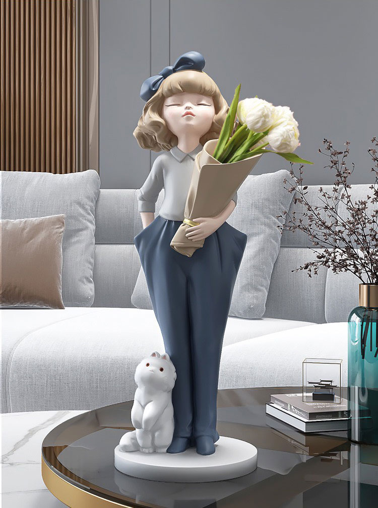 Decor em bé cầm bình hoa trang trí DEC 054