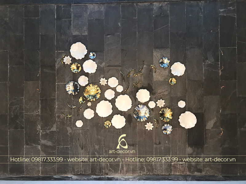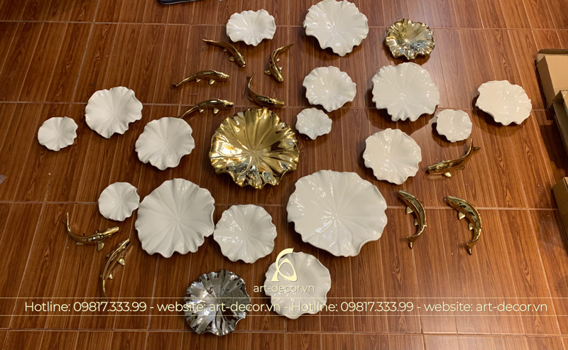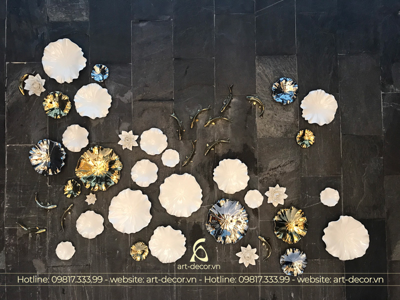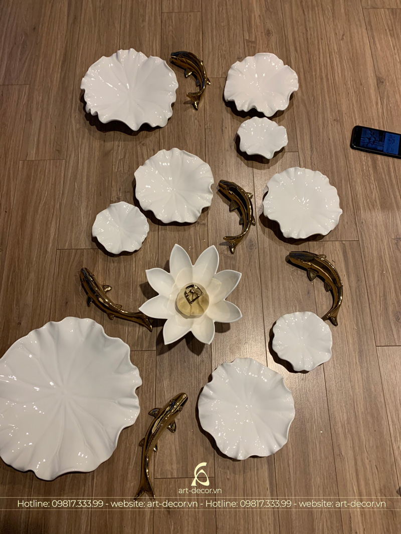 - Cá sen trang trí bằng gốm sứ ấn tượng, độc đáo, mới lạ đầy tính truyền thống