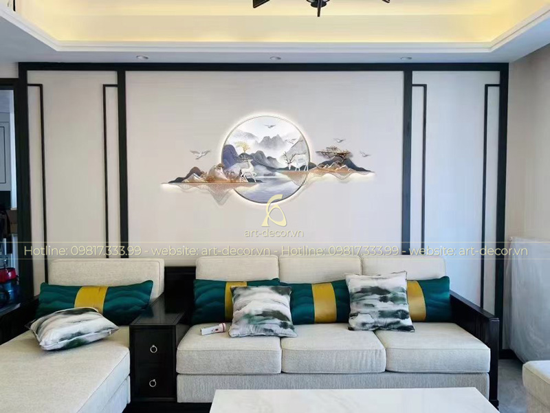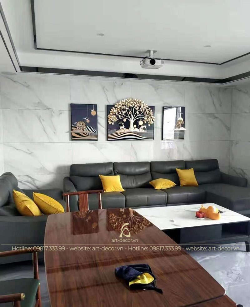 - Việc kết hợp tranh sắt cùng các đồ nội thất trong phòng khách chiếm một vai trò quan trọng trong việc đảm bảo không gian cho cả căn phòng. Tranh sắt có thể dễ dàng kết hợp với các phong cách từ cổ điển tới hiện đại, từ gần gũi tới sang trọng, tinh tế, đẳng cấp.