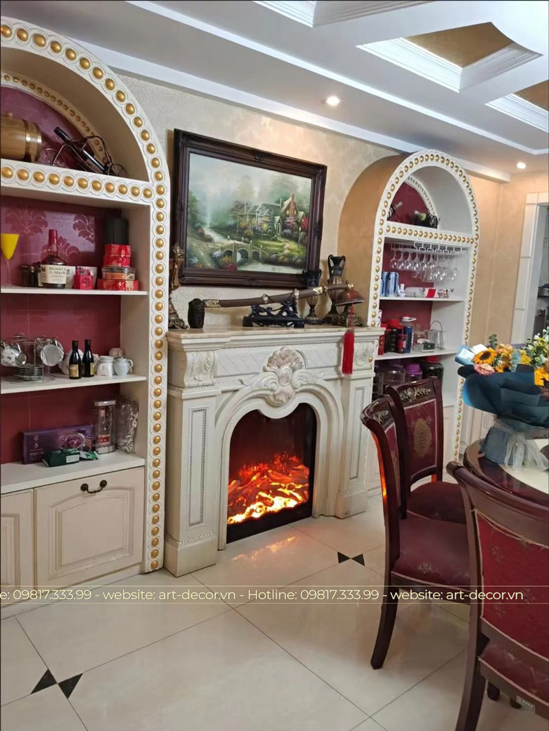 Lò sưởi giả trước tiên là giúp trang trí nội thất nâng cao thẩm mỹ và tạo thiện cảm khi tiếp khách đến chơi. Hơn thế khung cảnh của lò sưởi mang ý nghĩa ấm áp sum vầy mang đến may mắn tài lộc cho chủ nhà.