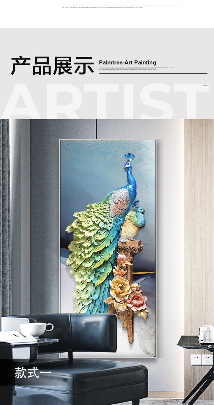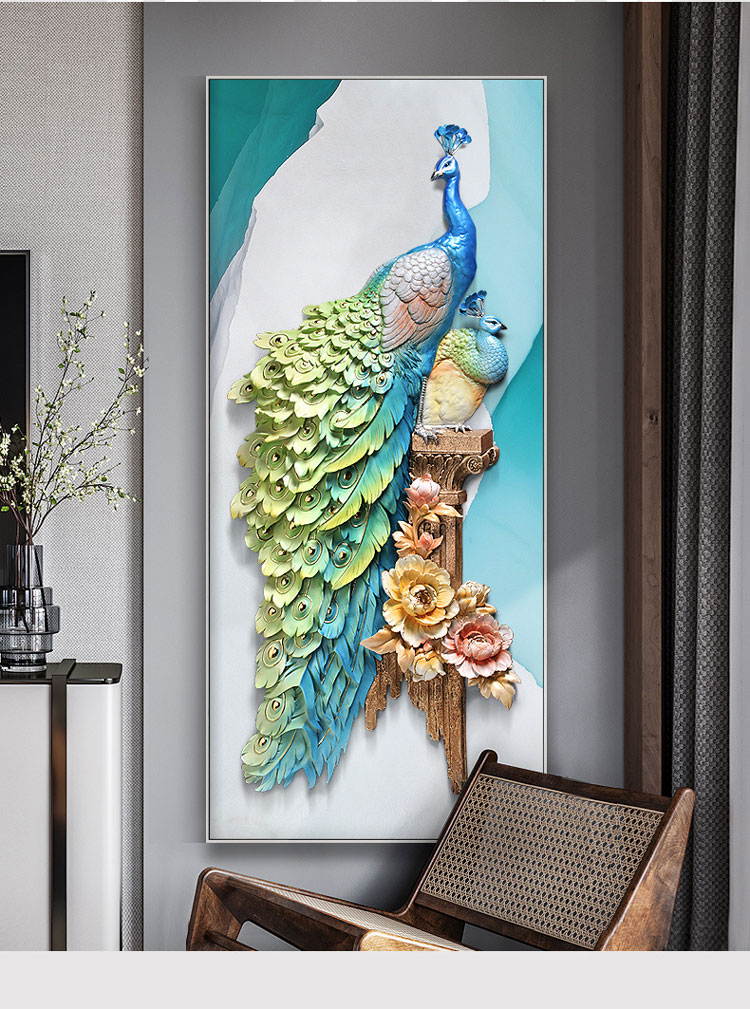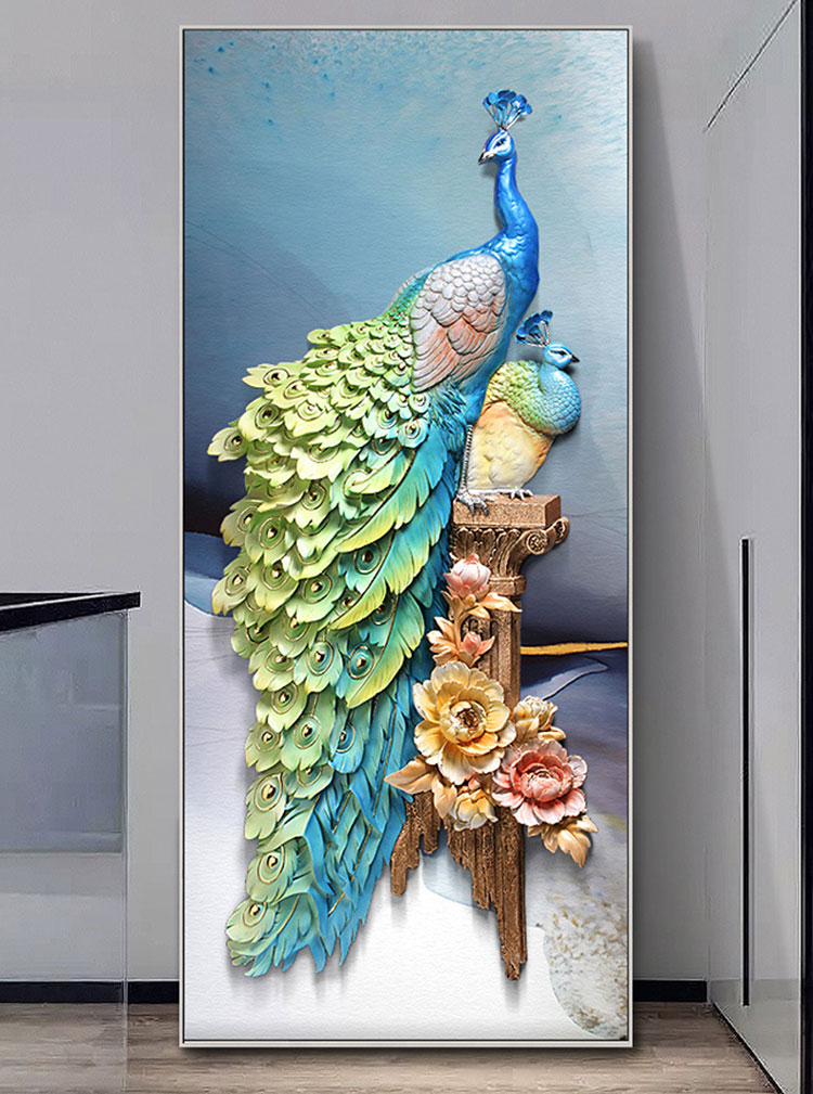 Tranh decor chim công 3D cao cấp TSA 043